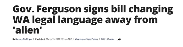 華盛頓州各級政府部門現已接到指示,要求從法規中刪除“外國人”壹詞,今後所有出現該詞的場合將統壹替換為“非公民”。