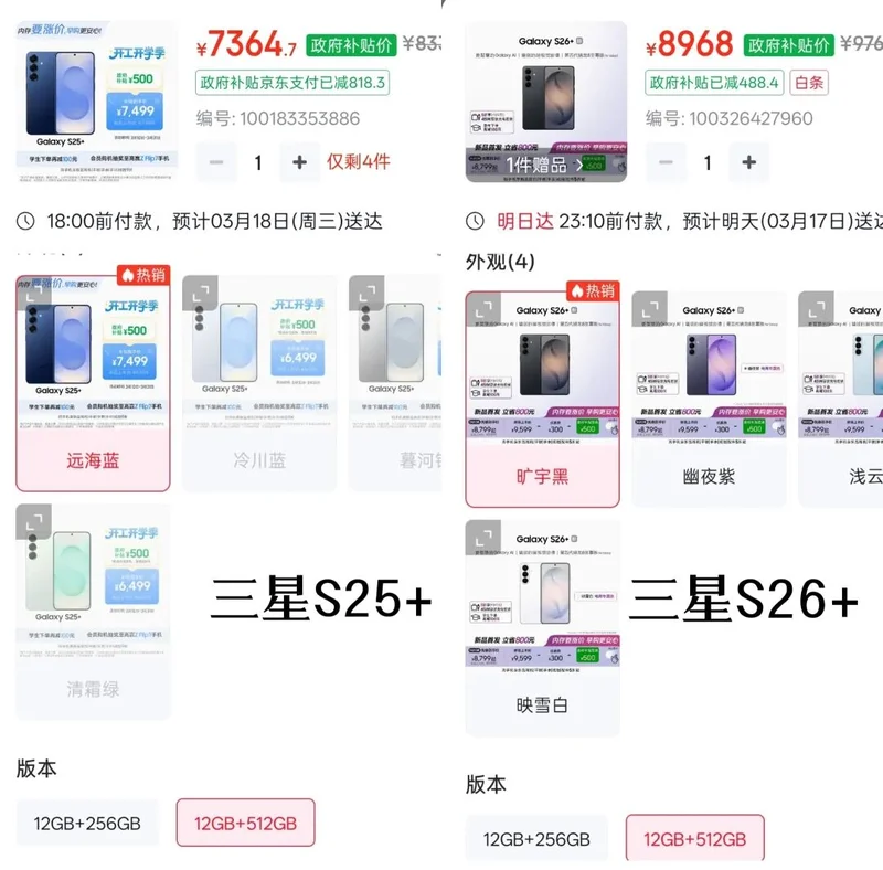 2月發布的叁星S26系列,普漲1000元起,頂配版相比上壹代漲了1600元,漲幅高達20%;