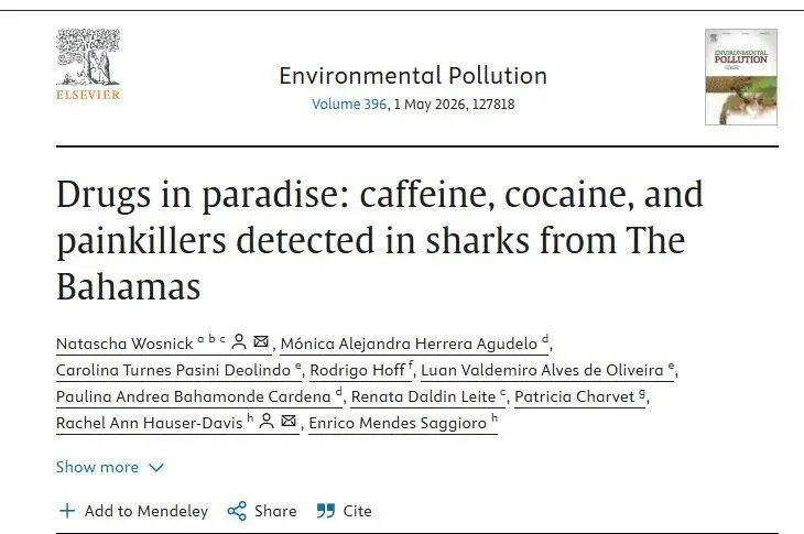 早在此次研究之前,同一研究团队便已在巴西里约热内卢近海的巴西尖吻鲨(Brazilian sharpnose shark)体内检出了高浓度可卡因。那项研究共检测了13条鲨鱼,绝大多数体内都发现了该物质,且浓度远高于巴哈马此次的检测结果。