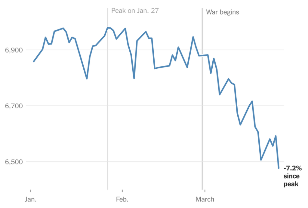 随着川普总统加大对伊朗施压,要求其接受结束战争的条件,油价大幅上涨,华尔街股市周四遭遇了自对伊朗开战以来最大单日跌幅。