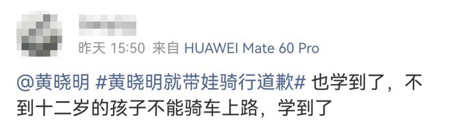并且大量网友因黄晓明此次带小海绵春日骑行一事才得知“未满12周岁禁止骑车上路”的规定,这也算是因祸得福,起到了正面示范、警示作用!