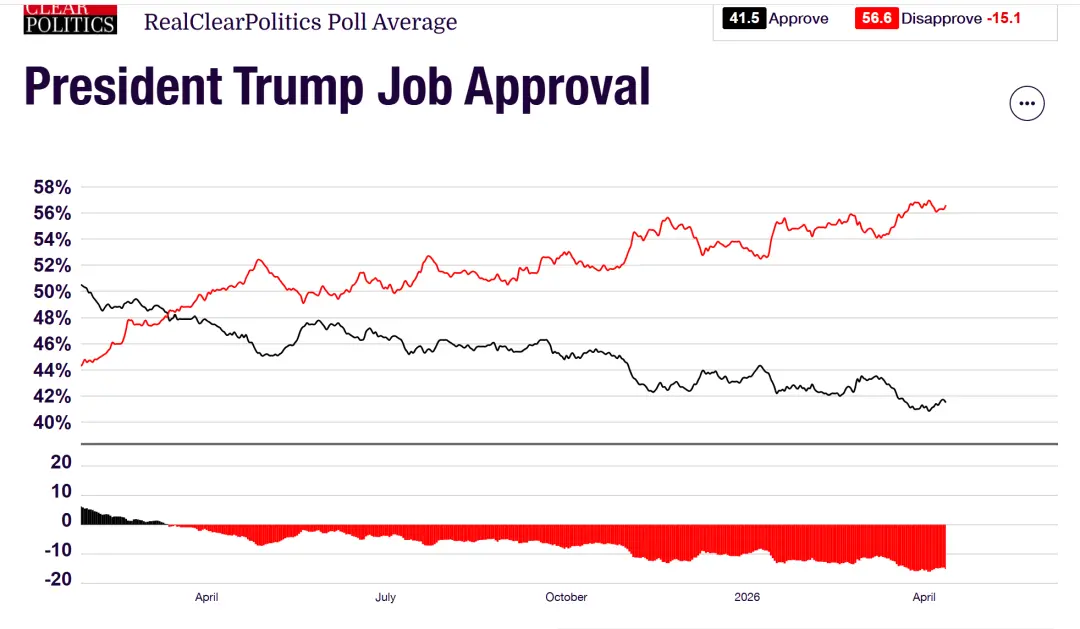 現在,共和黨民調完全崩潰,通脹、關稅、伊朗戰爭已經讓民意完全倒戈,無論特朗普怎麼做,都會輸掉選舉,壹場必輸的選舉,它對特朗普的制約作用已經大幅下降。
