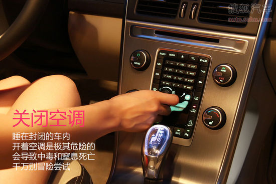 这里有必要单独拿来说说。在车内睡觉过夜,因为开空调和封闭车窗导致窒息中毒的情况已经屡见不鲜。而一氧化碳在车内的累积会让你逐渐陷入昏迷最终over。有点“温水煮青蛙”的道理。所以正确的做法:停车就关闭空调,打开一定的车窗,保持空气流畅。
