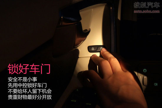 外部环境检查OK。你就可以回到车内了。记得及时锁好车门,这是你和外界唯一的阻隔,也是最基本的安全保证。即便如此做了,还是建议你把贵重财物分开放,比如手机、钱财和证件等,可以分别放到手套箱、座椅下方等位置。