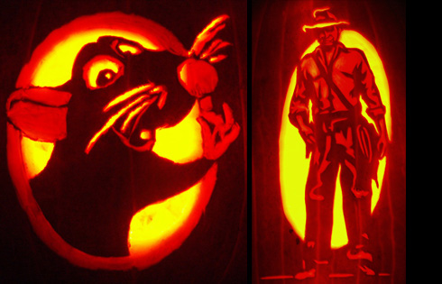 由一个叫Scott Cummins的人制作的立体南瓜雕刻——我喜欢右边那小猫咪,当然,里面点灯之后,估计就不那么可爱了……