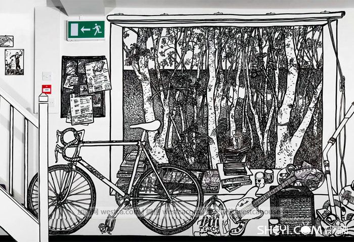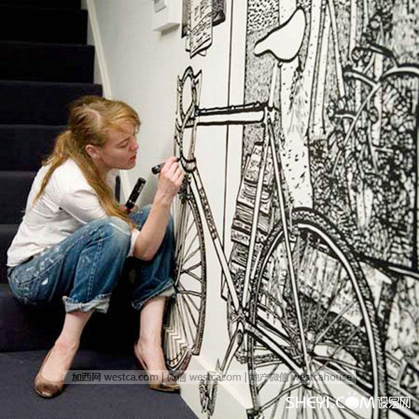 你是否觉得家里的墙面单调且无趣?看看艺术家Charlotte Mann和Timothy Goodman为室内墙壁换上的 “新装”。他们当空白墙面为画布,只用一支黑色马克笔,就能手绘出极其丰富又细腻的大幅画面。他们精彩绝伦的想象力为室内打造出一道独特的风景,仿佛走进一个童话般的幻想世界。