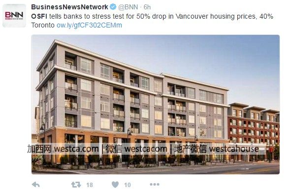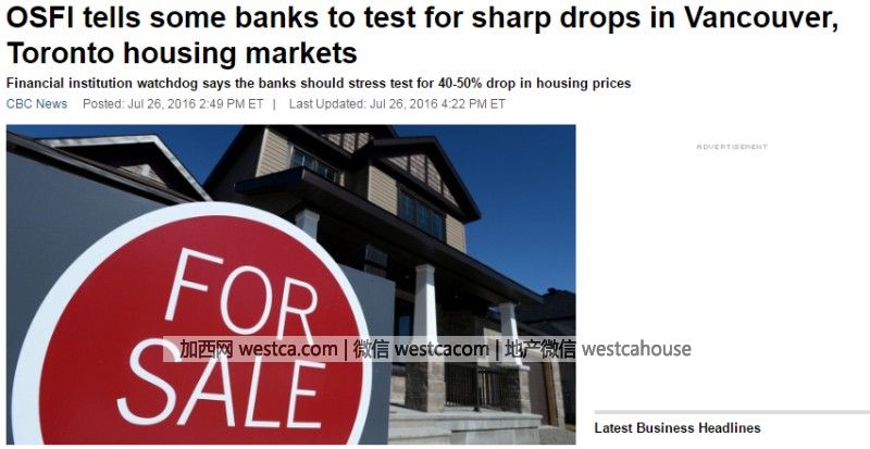 (加西網綜合)加拿大金融機構監管辦公室(OSFI)今日2016年7月26日發布通知,表示各大銀行要做好溫哥華房價暴跌50%的風險評估和壓力測試。。