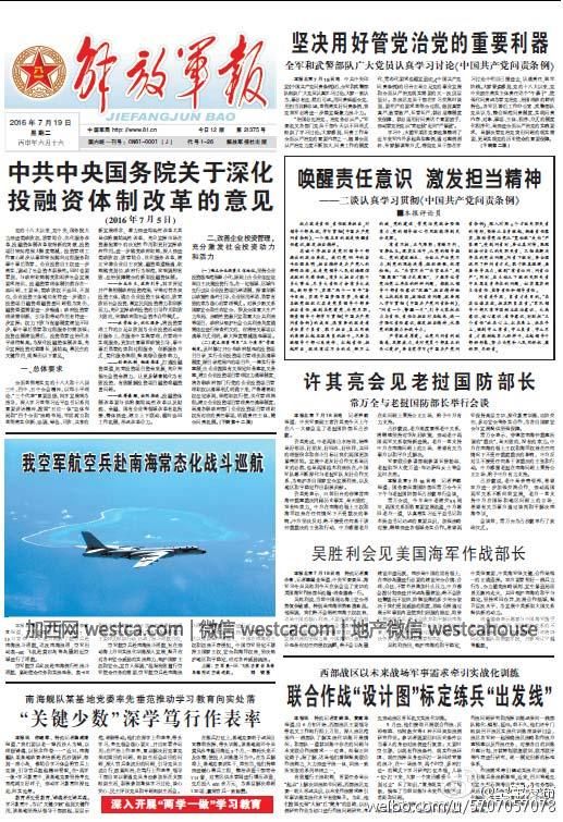 今年7月15日,中国空军官方微博@空军发布 贴出了轰-6K在黄岩岛巡航的照片,这组照片随即被社交媒体广泛转播,相关照片还登上了多家报纸的头版。7月18日,中国空军新闻发言人申进科大校在北京正式宣布:空军出动轰-6K飞机巡航黄岩岛。