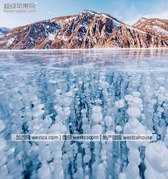 貝加爾湖長約600千米,湖面冰層的厚度在1.5至2米之間,可以承載重量約15噸的車輛,不過我們也經常看到碾碎了冰層,半截身子陷入湖水的車子。在這裡,冰的紋理千奇百怪,之所以會出現這種現象,是因為這裡的冰是壹層壹層結起來的,有時候你甚至還能在冰層裡看到幾條被凍住的魚或是幾根樹枝。貝加爾湖的冰層應該全世界最透明的冰層了,能見度在水深40米左右,你可以壹清贰楚地看到冰層下的所有事物:魚、長滿苔蘚的岩石、水草、深不見底的藍色湖水。