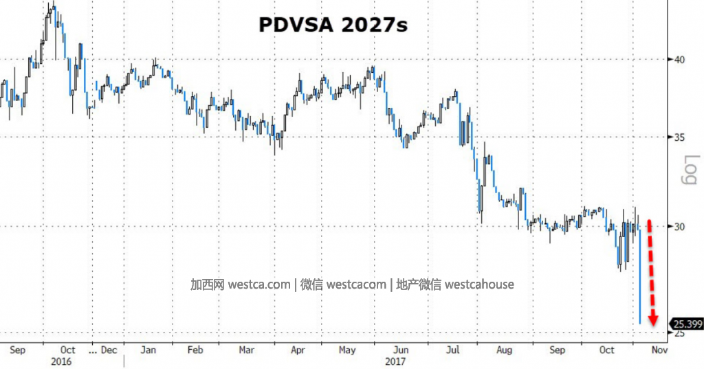 马杜罗讲话后,PDVSA公司债券快速跳水: