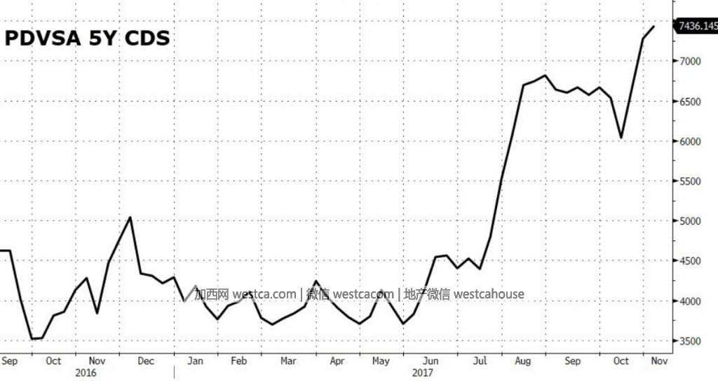 PDVSA激增800个基点至历史新高,隐含的违约可能性高达99%: