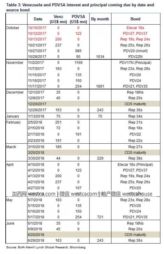 这个月,委内瑞拉政府和PDVSA还将面临4笔债务到期,总计7.22亿美元。
