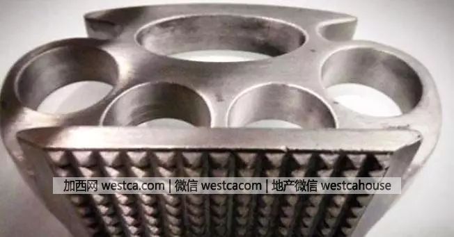 排名第拾個是在紐約水牛城-尼加拉國際機場壹件隨身行李發現壹個嚇人的「嫩臉工具」,它看來是可以把肉打爛的壹副布滿尖釘的指節銅環。