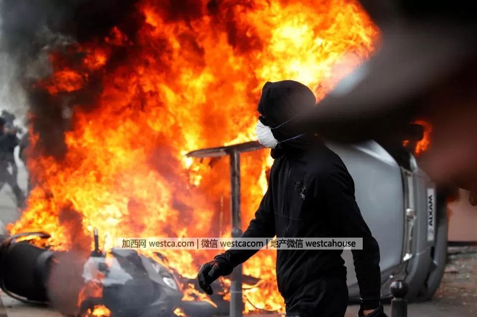 這些黑衣蒙面人在工會的游行隊伍之外,破壞公物和私物、縱火焚燒商店、向警察投擲物品,引起觸目驚心的暴力場面。內政部長嚴厲譴責了這些暴力行為。