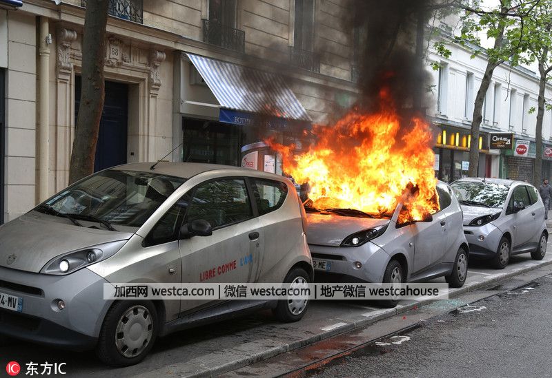 攻擊壹家雷諾汽車獨家經銷店,推翻門口的兩輛汽車,放火焚燒汽車;