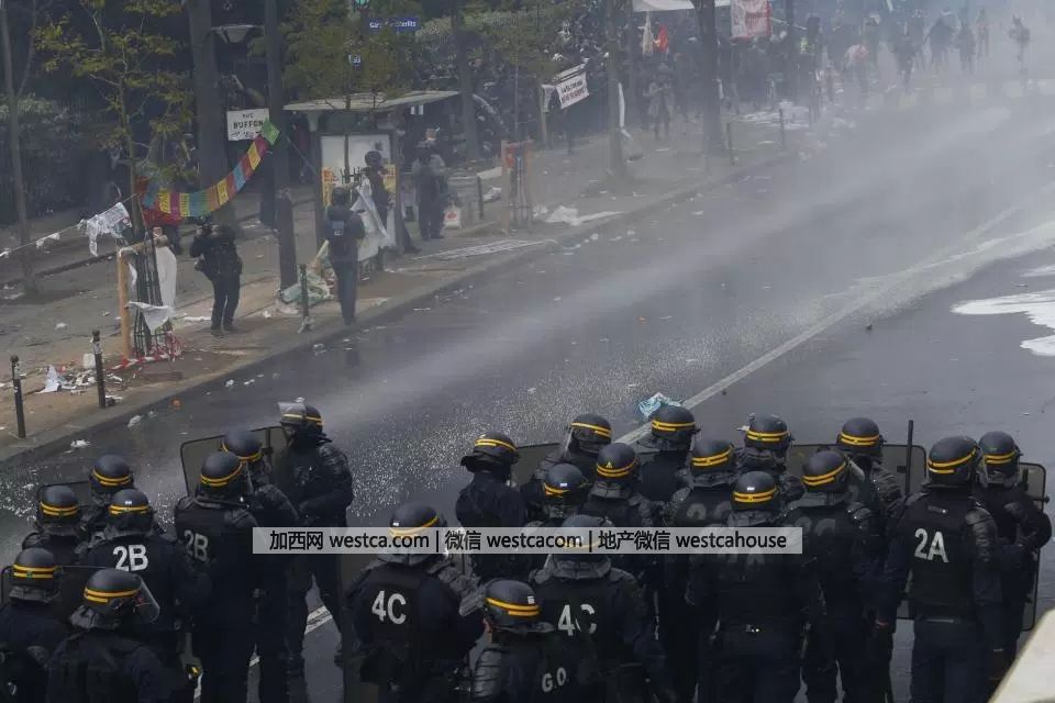 警方發射催淚彈還擊,使用水炮滅火並驅散人群。