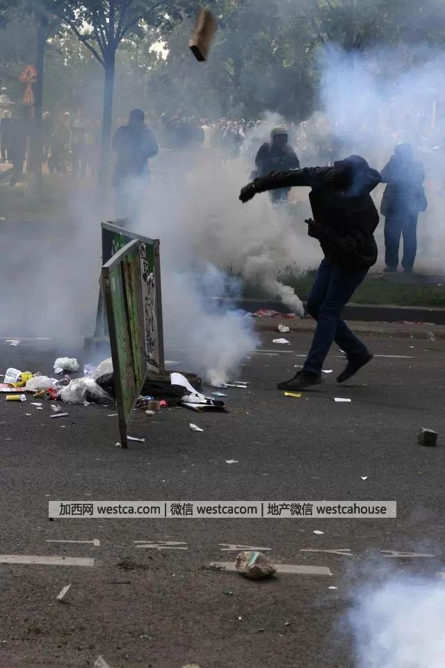 這些黑衣人走在工會示威隊伍的前面,高喊“人人憎厭警察”、“巴黎起來造反”的口號。他們在巴黎13區醫院大道(BOULEVARD DE L’HOPITAL)上沿路制造暴力場面: