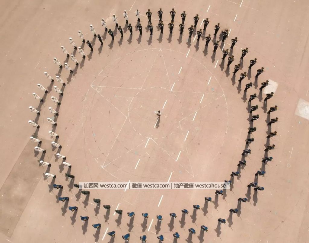 突然,所有仪仗队员停下训练。面向廖冰冰转体踏着整齐的步伐、喊着响亮的口号将她团团围住。