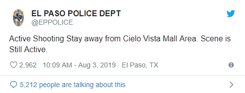 埃爾帕索警方表示,他們接到報告稱有多名槍手。