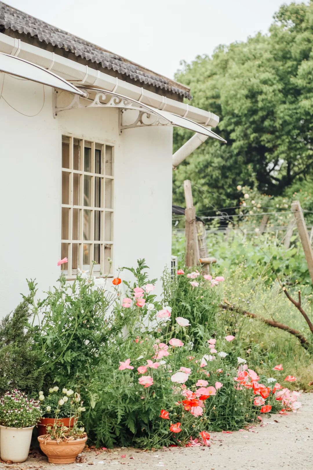 妈妈向来喜欢花花草草,在城里的小阳台无处施展的手艺,在这里她可以好好地大展身手,细细规划布置花园。
