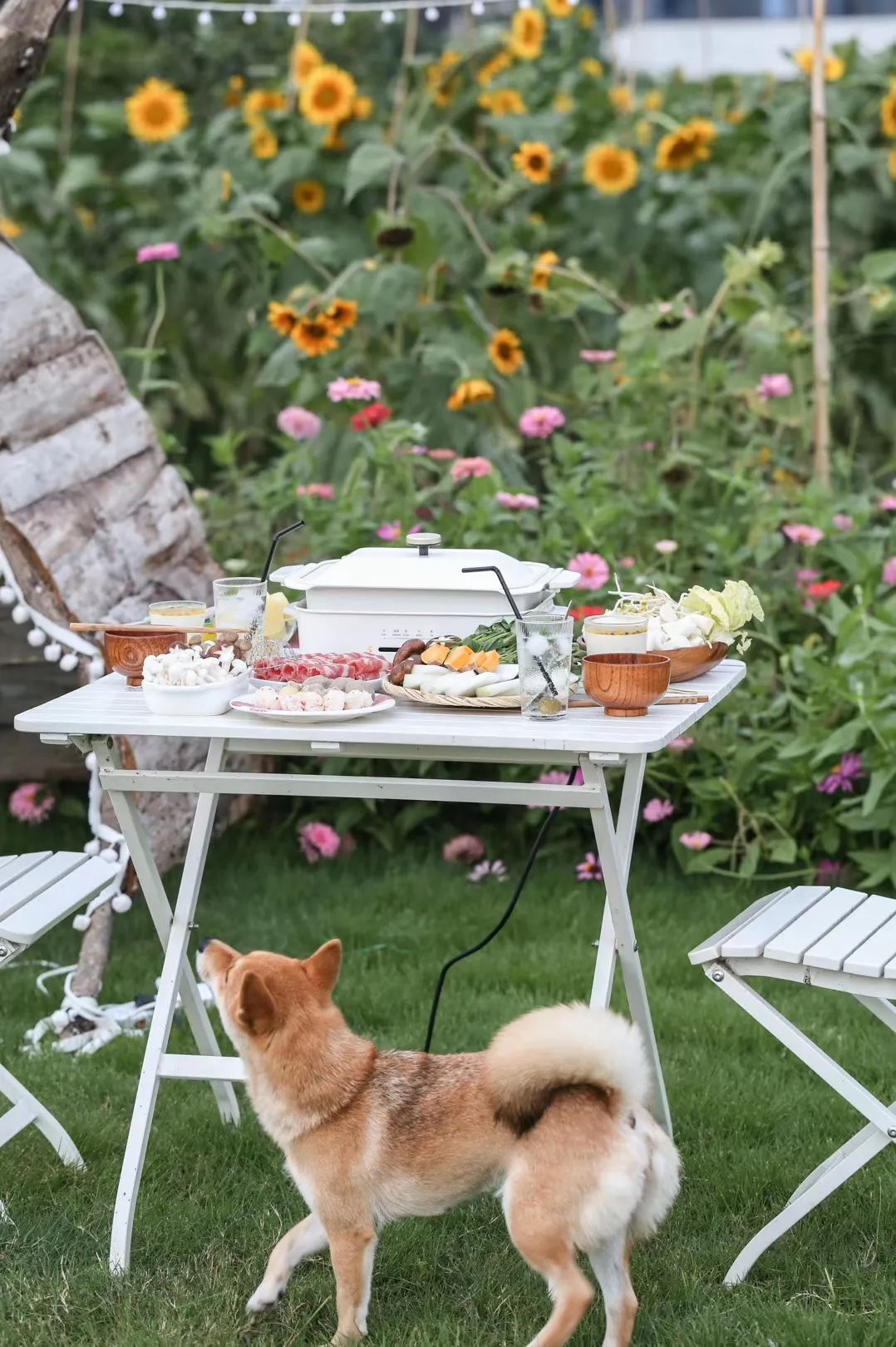 偶尔到田野里野餐,天气好的时候,把餐桌搬到户外,