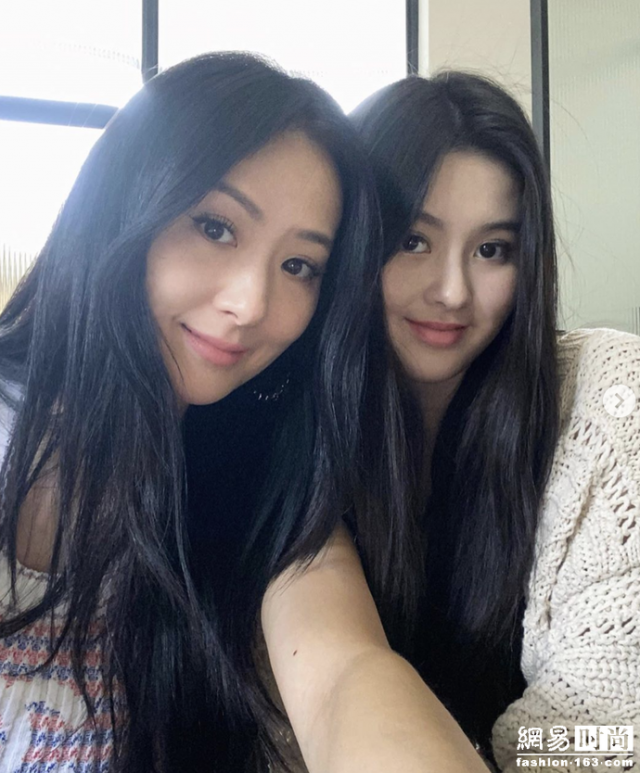 再來看看相差22歲的母女合影,孫芸芸臉上肌膚光滑又飽滿,加上黑長直發型,歲月仿佛在她身上沒有留下任何痕跡,凍齡外表和纖細身材看起來就像24歲壹樣!