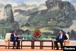 中国国家主席习近平在北京人大会堂会见到访的世卫组织总干事谭德塞。(2020年1月28日)