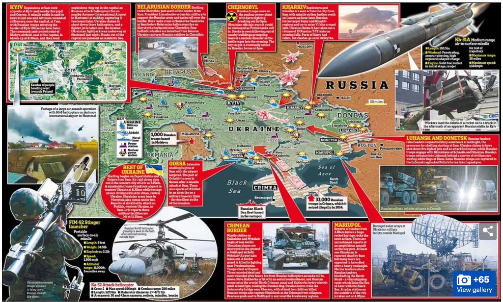 隨後是從南部的克裡米亞向赫爾松市發起的攻擊,從白俄羅斯向基輔的北部推進,以及從別爾哥羅德向正在進行最激烈戰斗的哈爾科夫的東部推進。