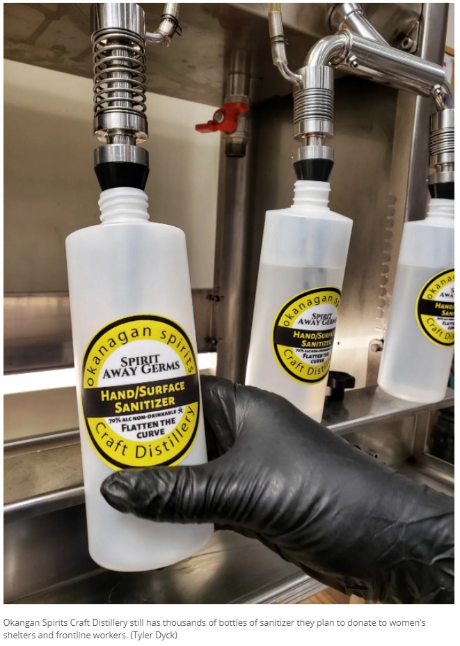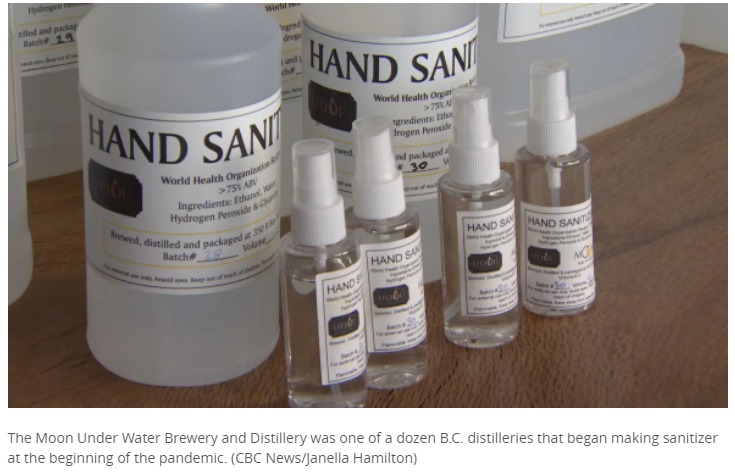 (加西网综合)据CBC News报道,BC省府下达新令,由于需要有限,曾在新冠疫情期间转产免洗消毒洗手液的省内的酿酒厂现被要求在5月全面停止生产消毒洗手液。有酒厂主不满省府“卸磨杀驴”的行为,直言感到“被背叛”。