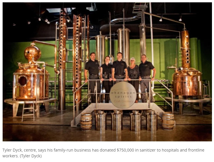 戴克(Tyler Dyck)说,在那段时间里,联邦政府一方面呼吁厂商协助生产消毒液,另一方面却花费了数亿元民脂民膏(tax dollars)从加拿大境外采购消毒剂。由于市场上充斥着进口的外国制造的廉价消毒剂,令本省酿酒厂因滞销而留下大量库存,厂家感觉自己的付出被政府轻视,犹如“被扇耳光”。