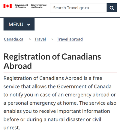 除了注册 ROCA 之外,加拿大全球事务部还建议在海外的加拿大: