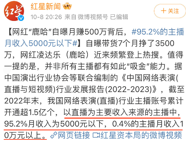每个行业干到顶尖收入都不会低,网红这个行当,来得快去得更快,还有相当大的运气成分,竞争难度可以说比其他行业更大。