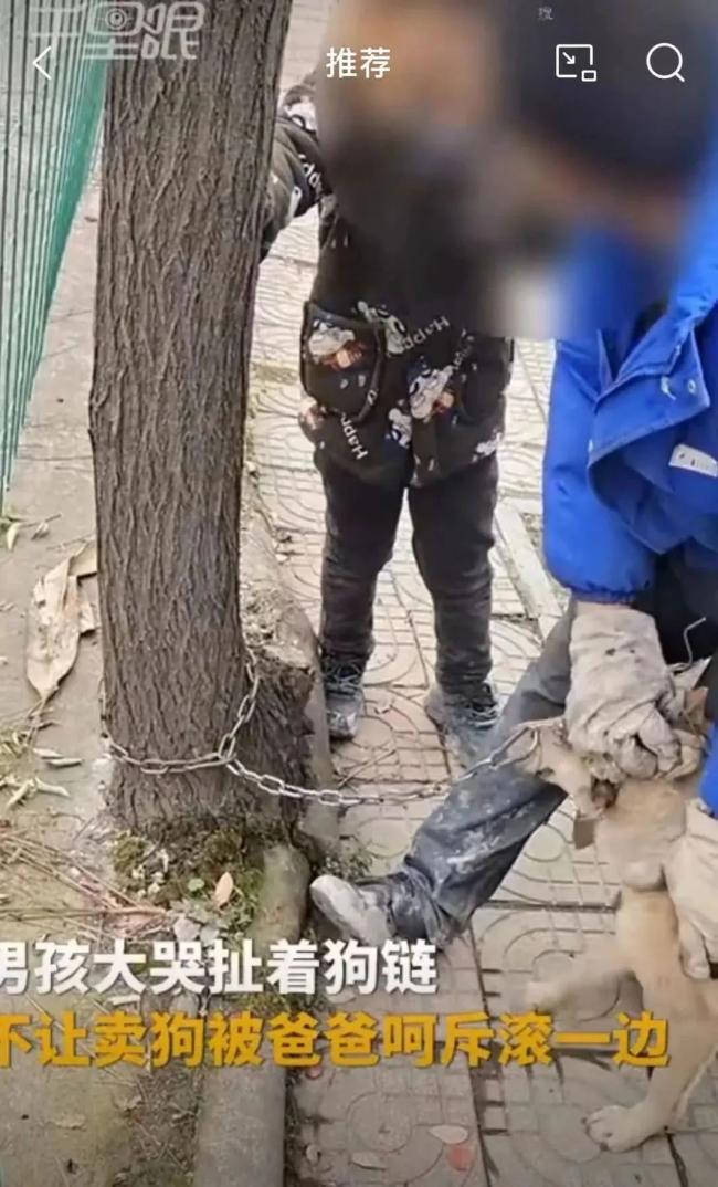 他哭着喊着扯着狗链阻止,最后小狗还是被拉走了。