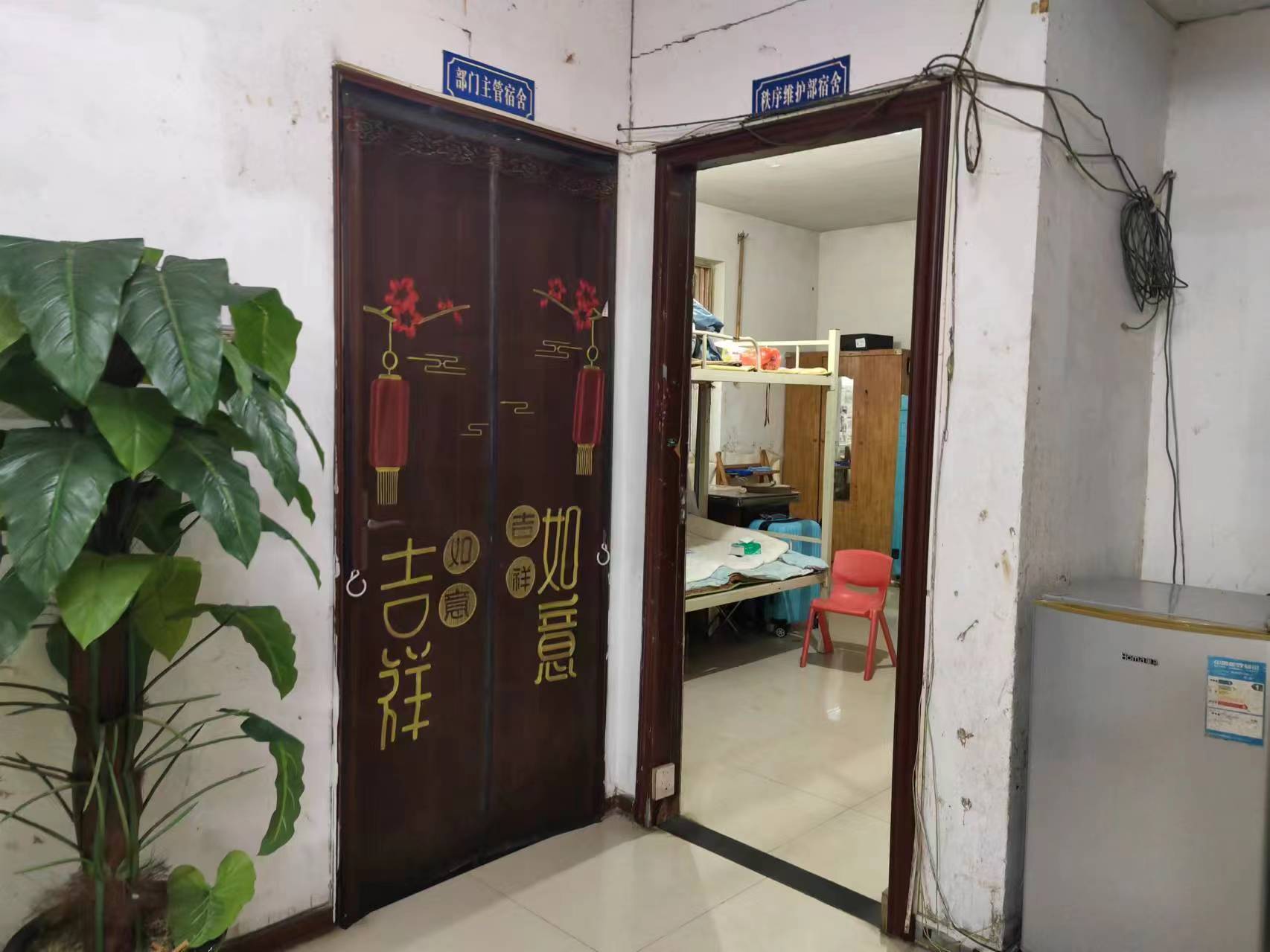澎湃新闻调查发现,于某某与方某夫妇休息的房间仅一墙之隔。方某房间内共有6个简易的上下铺,但平时只有方某夫妇住。由于房锁简陋,方某宿舍反锁的情况下,在外面仍然可以用钥匙打开。