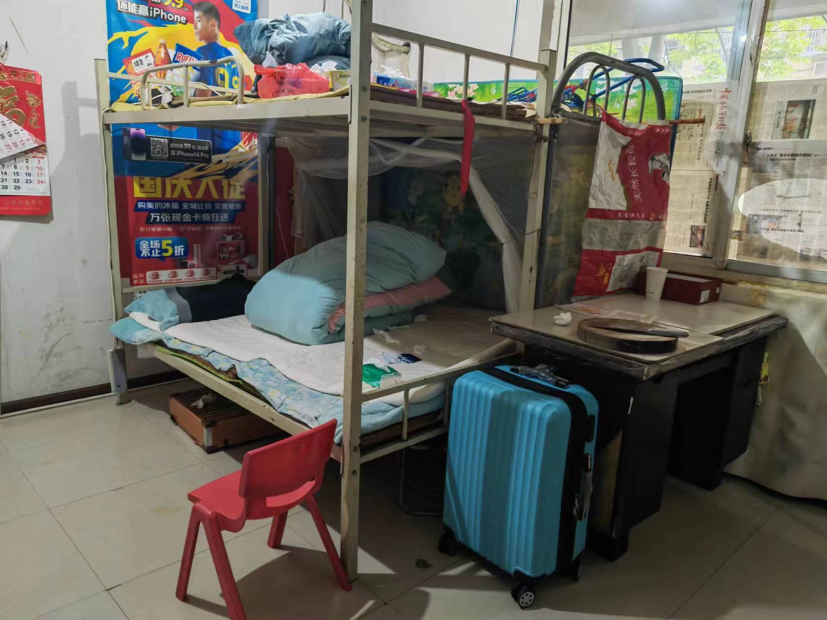 案发的简易上下铺。